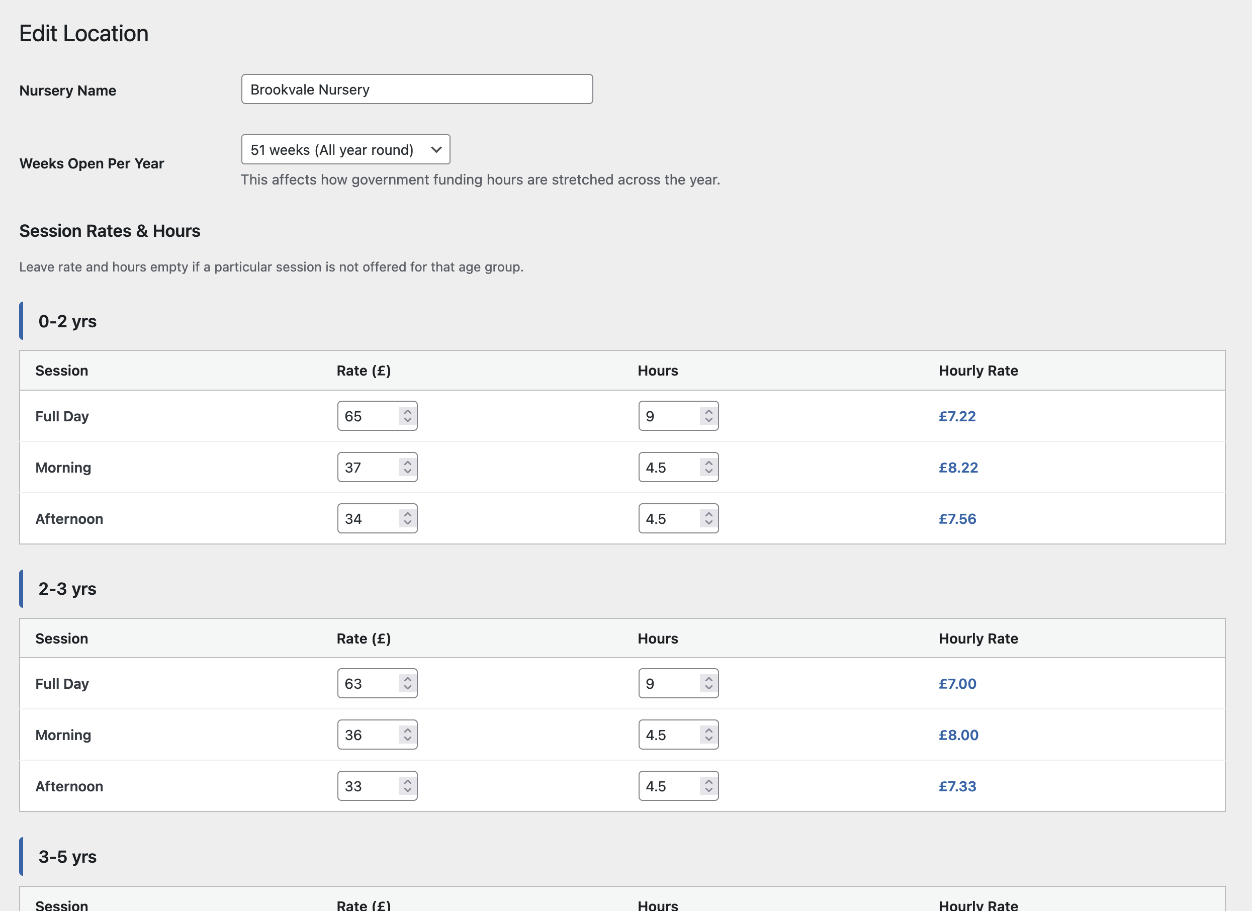 We turned the spreadsheet logic into an interactive calculator on their website. Parents select a nursery, choose their child’s age and session type, enter their funded hours, and instantly see weekly and monthly costs with a full breakdown.